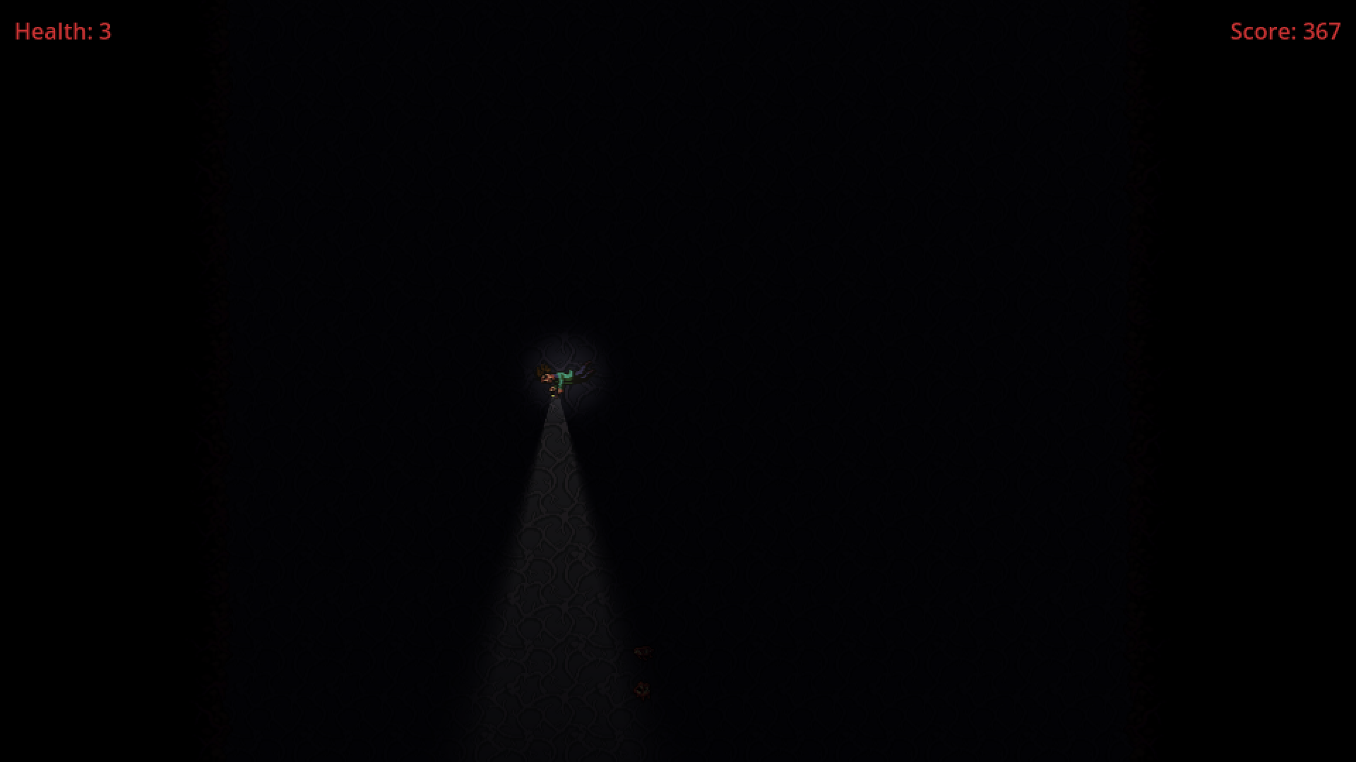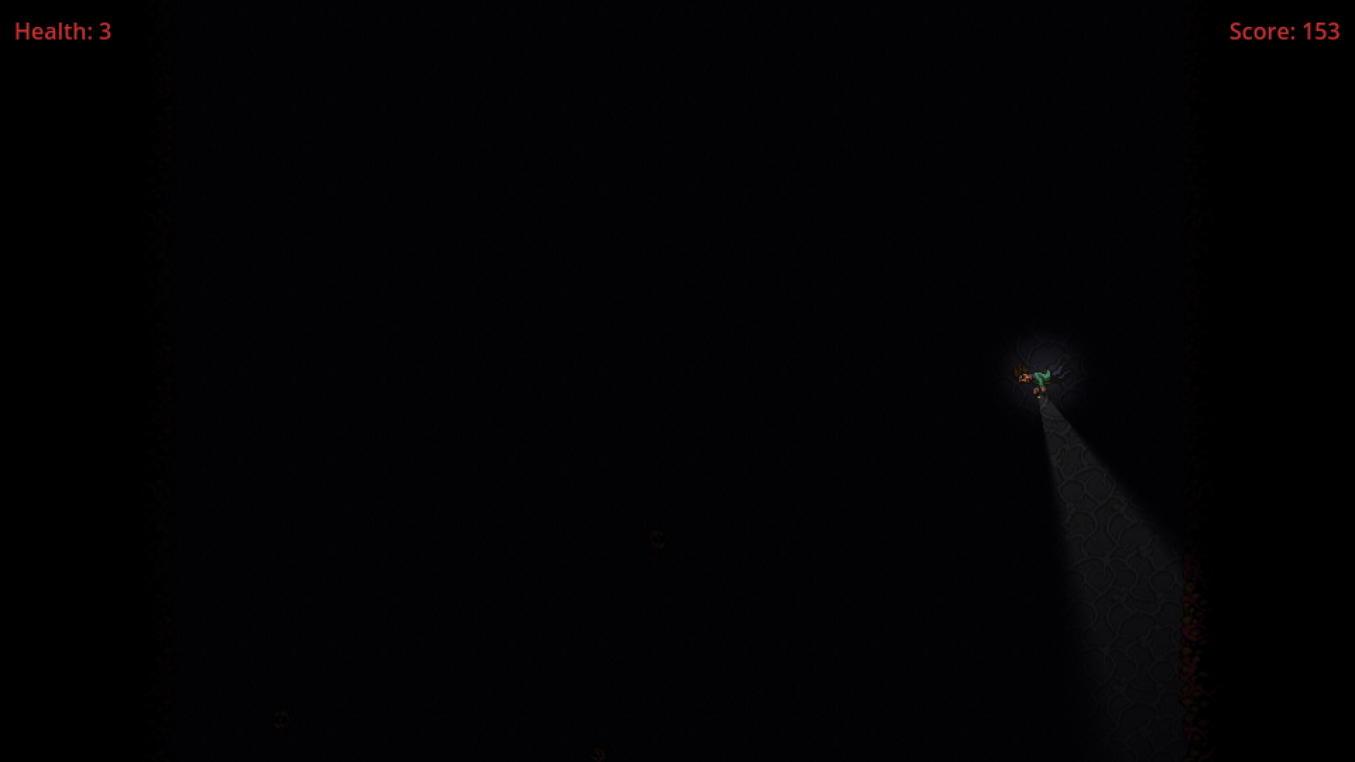 You are falling down a deep, dark, and mysterious hole. Armed with nothing but your flashlight and your pistol, how long can you survive the unknown horrors within? Made for Spooky Jam 2025
